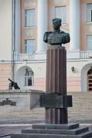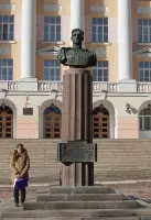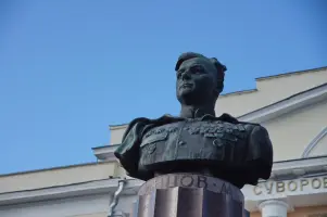 Михаил Петрович Одинцов (1921−2011) – дважды герой Советского Союза. Участвовал в боях с июня 1941 г. и первоначально летал на Су-2. Получил тяжелое ранение, когда его самолет был сбит Bf-109 °F. После излечения переучился на Ил-2.За всю войну отважный штурмовик совершил 215 боевых вылетов. Второе звание Героя Советского Союза М. П. Одинцову присвоили после Победы – 22 июня 1945 года, в четвертую годовщину нападения фашистской Германии на Советский Союз. Высокую награду герою вручил перед строем полка командующий 1-м Украинским фронтом маршал И. С. Конев. А Указ герой прочитал в Москве, куда прибыл для участия в Параде Победы. Вторую Золотую Звезду Героя майор Одинцов получил, когда вернулся с Парада Победы к месту службы. Было это в немецком городке Финстервальде. После войны продолжал служить в ВВС и вышел в отставку в звании генерал-полковника. Имел звание «Заслуженный военный летчик СССР». Так же, Михаил Петрович Одинцов с 1980 года получил звание «Почетного гражданина Екатеринбурга». Его бронзовый бюст установлен напротив Суворовского военного училища. Кроме военных заслуг, Михаил Петрович известен и как автор книг о войне: «Испытание огнем» и «Преодоление». За его плечами 50 лет службы в военной авиации, из них 44 года летной выслуги.